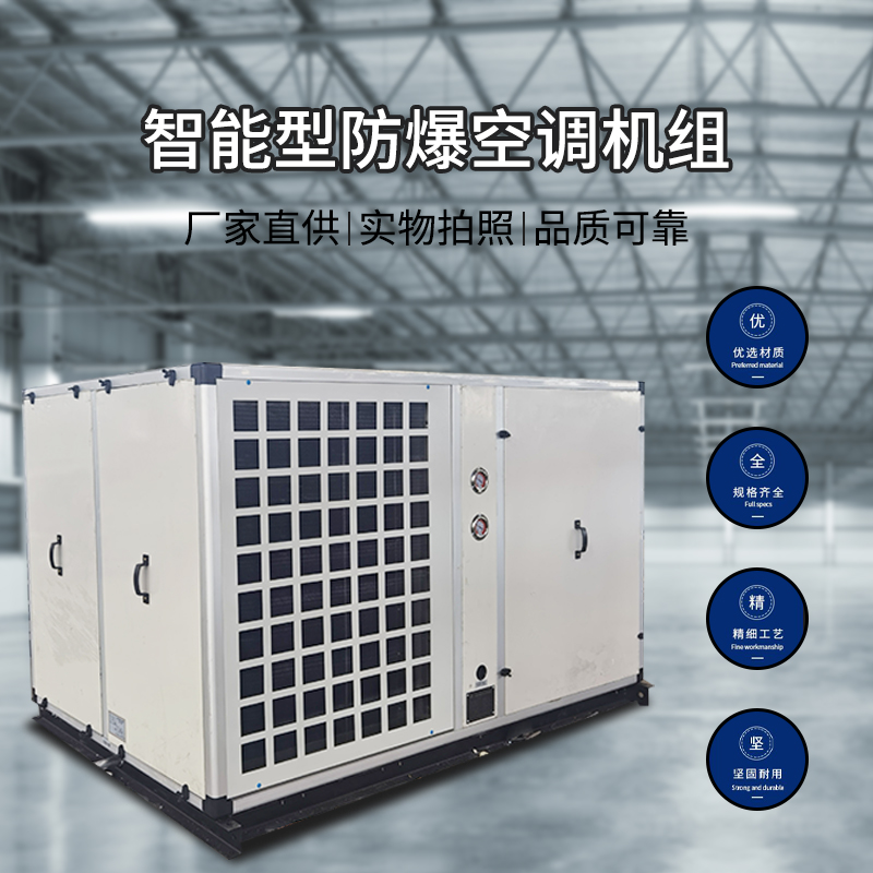 防爆"BZKT防爆系列屋頂式空調機組用于對室內空氣處理,系集制冷、制熱、除濕、加濕、通風、空氣凈化等功能于一體的大中型空調設備。該產品綜合了組合式空調箱與直膨冷源外機空調技術,可實現制冷與空氣調節集中綜合控制,具有效率高節能,系統簡單、性能穩定、結構緊湊、控制精度高、安全可靠、低噪聲、高靜壓、振動小、耐腐蝕自動化程度高、密封性好、防雨防塵性能好、安裝方便、外形美觀等特點,強大微電腦控制技術使產品性能與品質更可靠,經濟運行節約運行費用。