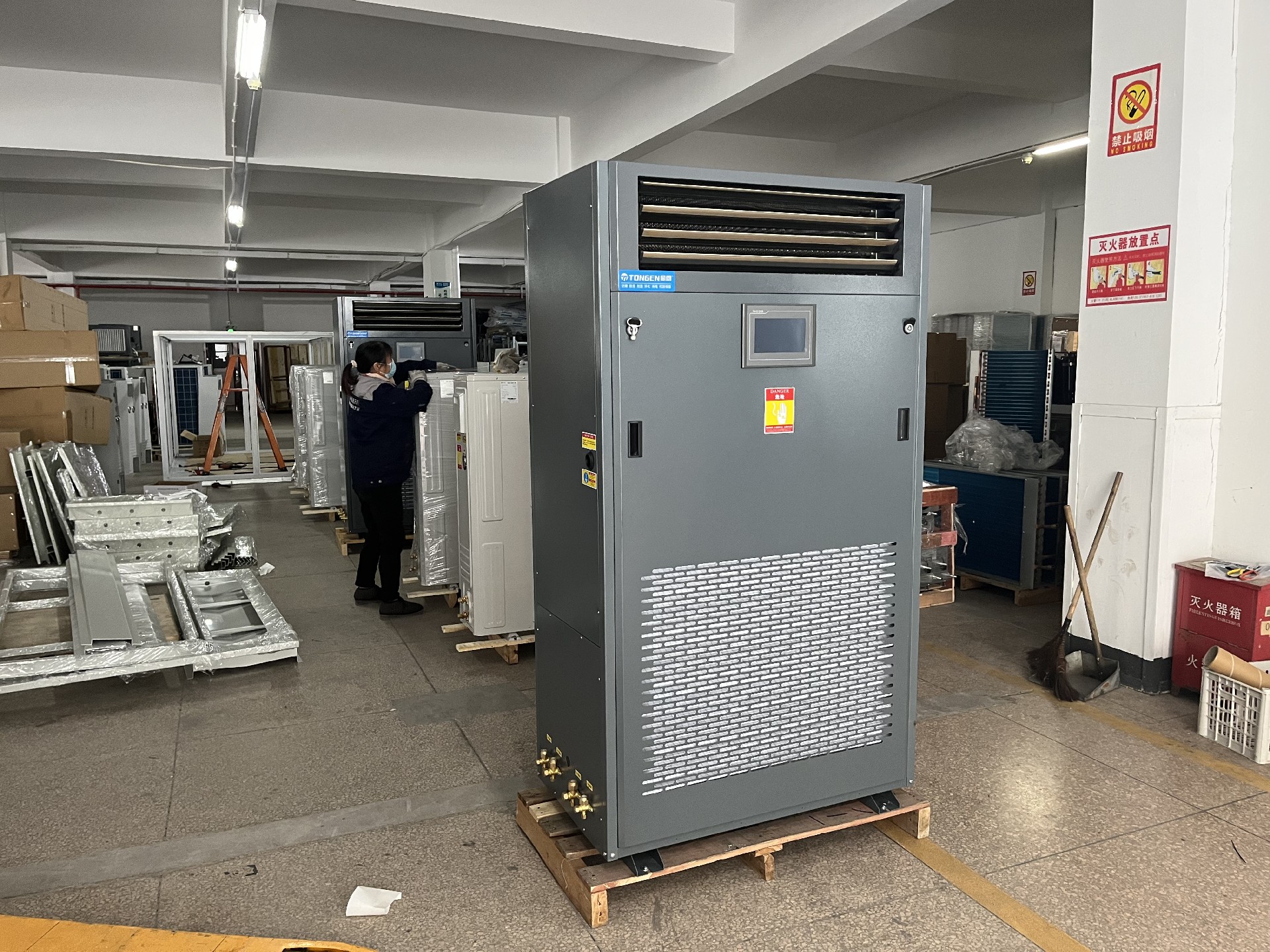 機組采用渦旋式全封閉制冷壓縮機,機組由一至五個壓縮機組成;配合高效翅片式換熱器及控制系統,確保機組節能高效,穩定運行。本系列機組分為調溫型和降溫型;調溫型除濕機集除濕、制冷功效于一身,且制冷能力可調;在除濕同時可控制溫度;降溫型為調溫型的簡化版;其制冷功能不可調節;只可附帶降溫;適用于熱負荷較大,相對濕度無要求之場所。