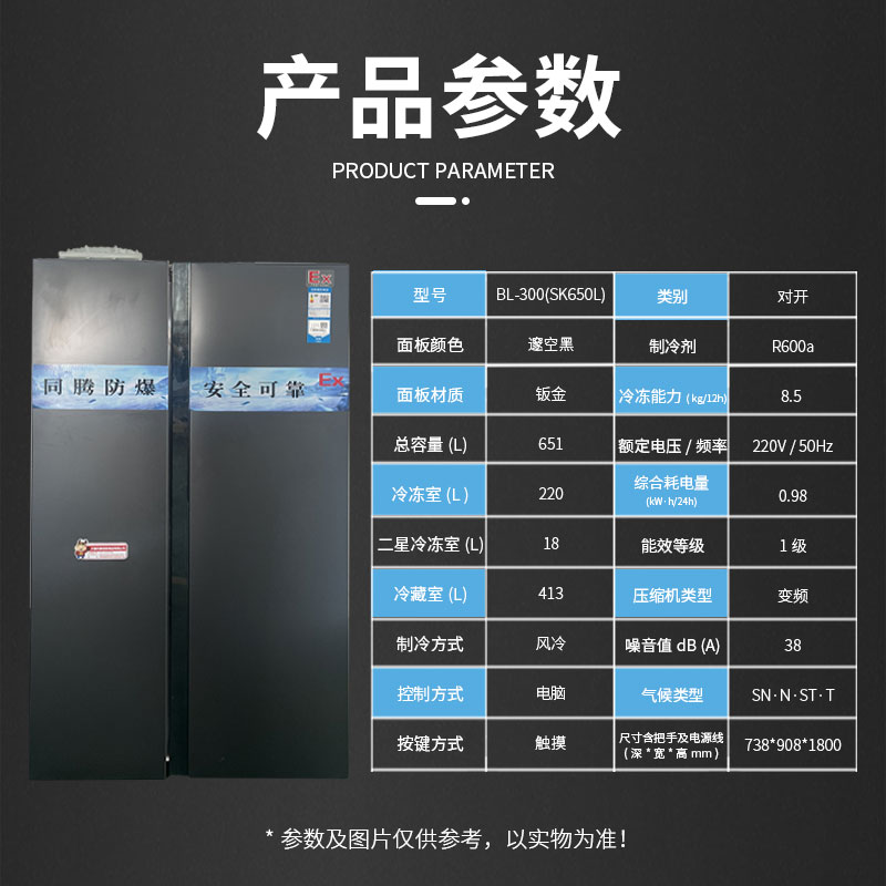 • 左右開門防爆冰箱系列機型通過特殊防爆技術加工處理,廣泛應用于國防、科研、石油、化工、醫藥、加工制造、生物等存在ⅡA、ⅡB、IIC級,T1~T4組可燃性氣體、蒸汽與空氣混合形成的易引發爆炸的危險場所,是針對有溫度控制要求場所設計的特種防爆冰箱,防爆冰箱BL系列產品均通過國家防爆電氣產品質量監督檢測中心檢驗,獲得國家防爆電氣設備防爆合格證CNEx22.2564X;其外形美觀,設計合理并具有安裝維修方便等特點,全系列防爆冰箱內部采用壓縮機、微電腦控制、數字顯示,具有噪聲低、性能穩定、操作簡便等優點。深受廣大特需行業客戶喜愛,并以部分錄入特需行業定點采購名錄。